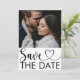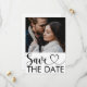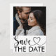 Chic et élégant, est cette carte moderne "save the date" mariage plat. Sur le devant est votre photo de couple préférée avec l'élégante calligraphie 'Save the Date' avec le détail du coeur. Au verso, il y a de l'espace pour ajouter vos détails. Très facile de customiser avec vos propres informations.