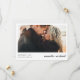 Ce mariage photo moderne simple et élégant sauve le modèle de la carte date comporte vos noms, date et emplacement mariage sous votre photo. Nous avons choisi une police décontractée et détendue pour vos prénoms sur le devant qui donne un sentiment chaleureux et familier. La couleur de texte par défaut sur les deux côtés est noire. Nous avons placé un symbole "+" entre vos noms, mais vous pouvez changer cela en "&". Vous pouvez choisir de modifier la police, la ponctuation ou la couleur utilisée pour divers éléments de texte de cette conception sur l'avant et/ou l'arrière. Par exemple, vous pouvez choisir de donner une certaine couleur au texte des noms sur le devant, ou de supprimer quelque chose ou de modifier un champ de texte entièrement avec un message différent. Au verso nous avons choisi un ordre atypique pour l'information, en plaçant le texte "s'il vous plaît enregistrer la date" après le texte "pour le mariage de", qui lui donne un chemin moins de charme voyagé. Vous pouvez facilement modifier cette commande ou changer quoi que ce soit d'autre pour convenir à votre style. Sur le devant, nous avons défini l'arrière - plan comme transparent pour laisser la couleur du papier servir simplement de tonalité de base. Sur le dos, nous avons choisi un ton appelé White Smoke qui est un gris très clair qui est principalement blanc. Vous pouvez facilement changer cela en choisissant l'une des couleurs de base dans les outils d'édition ou en entrant un numéro de couleur si vous avez une teinte spécifique à l'esprit que vous avez trouvée dans votre recherche, ou en regardant l'outil de spectre de couleurs et en choisissant quelque chose à la vue. Vous remarquerez également que nous avons utilisé tous les coques inférieurs pour certaines lignes de texte au verso, et tous les majuscules pour d'autres lignes. Vous pouvez décider de modifier ceci lorsque vous modifiez pour vos propres détails. Cette carte est entièrement modifiable selon votre style. Utilisez les outils de montage et de design intuitifs, votre photo préférée et votre inspiration pour faire de ce mariage photo moderne simple chic enregistrer la carte de date uniquement à vous!