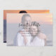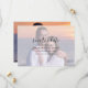 Ce joli script avec photo overlay mariage sauver la date est à la fois moderne et élégant. Revêtement blanc sur la photo avec vos détails sur l'avant et photo couleur complète sur le dos.