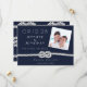 Cette simple plage de photos Save the Date vous propose votre propre photo et des cordes à carreaux nautiques avec vos noms et les mots, "Are liing the noeud" avec typographie classique sur un arrière - plan bleu marine, et votre site mariage sur le dos. Ceci sauve la date et est parfait pour le nautique, côtier, voile à thème, bateau mariage, ou mariage de plage et il est simple, minimaliste, élégant et moderne. Facilement personnalisé avec vos propres informations mariages.