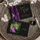 Cette élégante carte de date moderne comporte une bordure d'aquarelle violette ornée de parties scintillant en faux or. Le texte personnalisable combine écriture manuscrite couleur or, cuivre et polices italiques sur un arrière - plan non noir. Remplacez facilement l'exemple d'image au dos par votre propre photo verticale et ajoutez des informations supplémentaires telles que l'URL de votre site Web mariage.