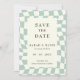 Retro Super Green Checkerboard Mariage Photo Enregistrer la date