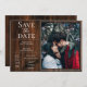 Annoncez votre jour de mariage avec cette photo rustique et simple Enregistrer la date Annonce. Le design Save the Date comprend un arrière - plan en bois rustique et un emplacement photo pour le couple heureux. Ajoutez des photos et des détails mariages pour customiser.