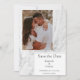 Cette annonce de save the date avec photo simple marbré blanc est accompagnée d'un design de texte simple, dans une mise en page moderne et simple sur un fond marbré en attente de votre photo et des détails de votre mariage pour personnaliser. Des couleurs supplémentaires sont disponibles avec ce design.