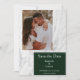 Cette annonce de save the date avec photo simple marbré vert émeraude est accompagnée d'une conception de texte simple, dans une mise en page moderne et simple sur un fond marbré en attente de votre photo, de vos monogrammes et des détails de mariage à personnaliser. Des couleurs supplémentaires sont disponibles avec ce design.
