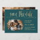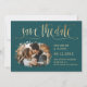 Photo turquoise moderne et or mariage enregistrer les cartes de date avec une police de script élégante. Personnalisez facilement ce carte photo avec vos images et vos détails mariages.
