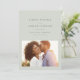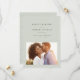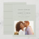 Avec une typographie moderne mais simple de bon goût, cette photo enregistrer la date est la façon parfaite d'annoncer votre fiançailles et mariage à venir. La couleur vert sauge clair classique fonctionne avec tous les styles de mariages de forme à décontracté. Le dos est constitué d'une simple bande. Vous pouvez modifier la couleur en cliquant sur "customiser plus loin".