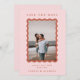 Un mariage branché enregistrer le faire-part de date avec votre photo préférée dans un cadre de pétoncle ondulé en terre cuite sur un arrière - plan rose vif et texte en terre cuite. Ajoutez votre site Web mariage et votre code QR à l'inverse.