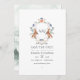 Faire-part de mariage présentant une crête fantaisiste sur le thème de la forêt et des bois, personnalisable avec les initiales du couple.