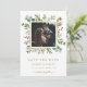 Cette invitation de sauvegarde de date de mariage présente de l'eucalyptus aquarellé peint, des feuilles vertes, des baies rouges, des branches de pin et un cadre carré en or faux avec un fond rouge au dos. Pour une personnalisation plus avancée de ce design, veuillez cliquer sur le lien "Personnaliser davantage". Des articles assortis sont également disponibles.