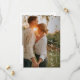 Mariage élégant enregistrer la carte de date avec une mise en page simple et minimale avec "enregistrer la date" dans une calligraphie manuscrite moderne et vos noms et date dans une police serif classique sur votre photo préférée. Le dos a une deuxième image avec votre message personnalisé. Le thème de couleur est noir et blanc et peut être modifié dans l'outil d'édition de conception.
