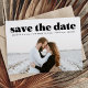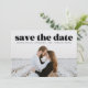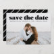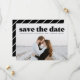 Annoncez votre prochain mariage avec notre style Modern Bold Black Typography enregistrez les cartes photos de date. Le moderne enregistrer les cartes de date affiche votre photo fiançailles avec "enregistrer la date" dans une superposition de texte noir en gras. Personnalisez la carte en ajoutant vos noms, votre date de mariage et votre emplacement de mariage. La carte revient à un arrière - plan rayé noir et blanc personnalisable.