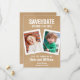 Un plaisir à enregistrer l'invitation de la date avec vos photos d'enfance sur un arrière - plan kraft rustique vintage. Le verso contient des informations supplémentaires sur la date, y compris l'adresse de votre site Web mariage.