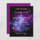 Une jolie photo de galaxie violette et bleue avec une calligraphie contemporaine blanche économise la date mariage design du texte. Créez vos propres cartes d'invitation personnalisées pour un mariage planétarium, ou un autre lieu cosmique. Toutes les zones de texte de ce produit papier peuvent être customisées. Il y a beaucoup de place pour plus d'informations au besoin. Le dos est un violet solide de coordination, mais vous pouvez changer la couleur ou copier et coller l'image de l'espace sur ce côté.