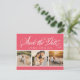 Style vintage personnalisé rose et blanc (note, la couleur arrière - plan peut être modifiée) mariage enregistrer la fonction "Enregistrer la date" dans un élégant style de script de calligraphie manuscrit, trois (3) espaces pour les photos fiançailles (conseil : rogner à la forme carré avant de télécharger), et du texte au dos qui peut être personnalisé avec des informations mariage.