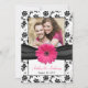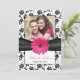 Le texte et la photo sur ce mariage chic et classe rose chaud, noir et blanc floral damassé rose gerbera daisy photo mariage enregistrer la date invitation sont entièrement personnalisables. Pour modifier le texte, y compris le devis au verso, et la photo utiliser les options de personnalisation. Pour les modifications plus importantes, telles que les modifications de la police, de la couleur de police, de la taille de police, de la taille de la photo, du placement de la photo et/ou du placement du texte, utilisez l'option customiser. Bien que cette invitation à la marguerite rose soit actuellement customisée pour un mariage sauf la date, elle pourrait aussi être utilisée pour d'autres occasions spéciales. Vraiment, c'est à vous de décider. Tout ce que vous avez à faire est de changer le texte et les photos. REMARQUE : Cette invitation est un design plat sans embellissement 3D.