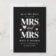Mariage de typographie romantique sauver la date en noir pour un mariage lesbien avec le futur MRS et MRS. écrit en lettres blanches en gras avec un coeur tourbillonnant et, et rose. Typographie lesbienne enregistrer la carte de date avec enregistrer la date pour le futur Mme & Mme dans un design noir, rose et blanc dans un design propre mais romantique. Envoyez-nous vos dates avec ce mariage lesbienne noir, rose et blanc enregistrer la carte de date personnalisée avec vos noms et détails mariages mais sans photo.