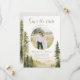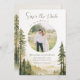 Photographie Mariage chrétien Enregistrer la carte Date représente un design d'aquarelle nature simple incluant des pins et des montagnes dans les tons de terre de sauge, vert et bronzé. Le dos présente une citation mariage inspirante, "Deux vies unies dans l'amitié, Deux amis unis dans l'amour, Un amour uni dans le Christ."