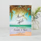 Plage avec palmiers, soleil, lumières à cordes et script. Sauvegardez la date qui peut être customisée avec votre nom.Sélectionnez le bouton "personnaliser" pour modifier le style, la couleur et la taille de la police.