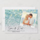 Cette élégante chaîne de palmiers de plage lumières arbre destination mariage Save the Date dispose de votre propre photo caractéristiques votre date mariage sur un cadre photo instantané, et élégant script de calligraphie lettré à la main sur une plage tropicale arrière - plan avec palmiers tropicaux et des lampes à cordes. Une façon merveilleuse d'invitation vos invités à votre tropical bord de mer ou en bord de mer mariage à Hawaii, Floride, Californie, Mexique, ou autre lieu de destination mariage.