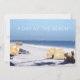 Personnalisez cet invitation unique rétro beach party avec des parapluies jaunes et un bel océan bleu!