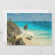 Enregistrez la carte de dattes avec une belle photo de Tulum, Mexique. Eaux turquoise sur un rivage sablonneux. Le vent balaya les palmiers qui soufflaient dans la brise près d'une falaise escarpée. Apaisant et relaxant.