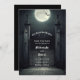 Une éffrayante porte de cimetière avec une pleine lune et un ensemble de chauves-souris est juste la bonne humeur pour ce gothique à sauver l'invitation de la date. Parfait pour annoncer votre mariage à venir et s'assurer que les gens sauvent la date. Moody and dark pour un mariage gothique ou d'Halloween.