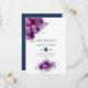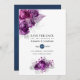 Plum foncé violet rose et parties scintillant argent faire-part de mariage feuillage tropical avec un bleu marine de l'aquarelle laver inverse.