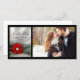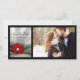Annoncez vos nouveautés de décembre avec la Poinsettia rouge et les perles blanches sur le mariage d'hiver vert Save the Date Carte photo. Customisez-le avec une photo de la mariée et du marié à être, les noms personnels et la date de la cérémonie de mariage. Cette élégante nuptiale d'hiver personnalisée garder la photo date dispose d'une photographie florale d'une fleur de Noël rouge poinsettia fleurie avec un bouton perle au centre, collier de perle blanche avec une gaine verte et arrière - plan satin blanc.