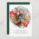 Un Noël d'art populaire moderne et festif sauvez la carte de la date. Deux bouquets de poinsettias rouges sont placés sur une couronne de verdure et de baies. La couronne embrasse votre photo. Une couche blanche spéciale assure que votre photo s'adapte parfaitement à la couronne. Super facile à ajouter et à customiser le texte modèle. Le dos de la carte de date de sauvegarde est vert foncé. Des informations supplémentaires sur le mariage se trouvent au verso. Message-moi (Je suis Nellie) si vous voulez des éléments de coordination.