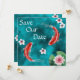 Cette invitation Save the Date de mariage capture la beauté orientale du Japon. Il dispose d'un bel arrière - plan d'eau bleue avec deux poissons Koi nageant entourés d'un nénuphar et de fleurs. Le poisson koi symbolise l'amour au Japon.