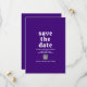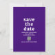 Mariage de style moderne enregistrer la date avec une disposition simple et minimale avec vos noms dans une police rétro super. Vous trouverez ci-dessous les détails de votre événement dans une police sans serif avec votre code QR (facultatif) pour que les invités puissent scanner et aller sur votre site Web pour plus de détails. Les couleurs vives sont le violet royal vif. Le code QR peut être supprimé et les polices / couleurs peuvent être modifiées dans l'outil d'édition de conception.
