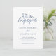 Mariage de style classique enregistrez la carte de date avec un design simple avec une touche moderne. "We're Engaged" est écrit dans un élégant script de brosse et les noms de la mariée et du marié sont dans une police serif traditionnelle. Les polices et le dos sont en bleu poussiéreux et peuvent être changés en n'importe quelle couleur que vous souhaitez dans l'outil d'édition de conception. La mise en page minimale de cette sauvegarde de la carte de date en fait un excellent pour un mariage formel.