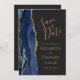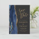Le bord gauche de cet élégant mariage moderne, à l'exception de la carte de date, est doté d'une bordure en aquarelle bleu marine ornée d'une parties scintillant en faux or. Le texte personnalisable combine écriture manuscrite couleur or, cuivre et polices italiques sur un arrière - plan non noir. À l'envers, remplacez facilement l'exemple d'image par une photo de la future mariée et mariée, et ajoutez quelques lignes d'informations supplémentaires telles que l'URL de votre site mariage.