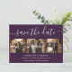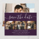 Save The Date Purple Elegant Modern Script Photo Collage Wedding
