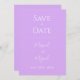Joli violet "Save the Date" qui est parfait comme prélude à votre invitation formelle pour tous vos invités. Fait avec de belles polices en blanc simple et élégant. Parfait pour votre occasion spéciale. Un rappel parfait pour tous vos invités.