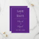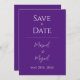 Profond élégant violet "Save the Date" qui est parfait comme prélude à votre invitation formelle pour tous vos invités. Fait avec de belles polices en blanc simple et élégant. Parfait pour votre occasion spéciale. Un rappel parfait pour tous vos invités.