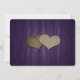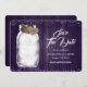 Mariage rustique violet enregistrez la carte de date avec un pot en maçon avec des lampes à cordes et orné de deux coeurs de burlap sur un arrière - plan en bois de grange. Personnalisez facilement ce mariage romantique rustique violet enregistrer la date en ligne. Objets correspondants disponibles pour compléter ce mariage violet enregistrer la date.