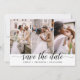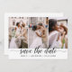 QR Code - Paysage moderne et élégant Horizontal Trois (3) Photo Enregistrer la date Magnet Mariage avec typographie manuscrite. L'aimant d'invitation de date inclut la typographie de script et le design chic et simple auquel vous pouvez ajouter votre photo de fiançailles customisée à.