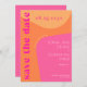 Formes Abstraites retro style vintage unique mariage budget enregistrer la date avec numérisation QR CODE (généré automatiquement avec votre lien URL) et typographie audacieuse dans une vibrante tendance magenta rose chaud et orange chic palette de couleurs. +++++++ Veuillez noter que toutes les couleurs sont modifiables. +++++++++++++++++ La carte est adaptée aux mariages contemporains décontractés et élégants.