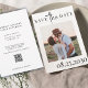 Script minimaliste de typographie chic noir et blanc de mariage enregistrer la carte de date avec photo personnalisée, texte, et code de numérisation sur le site Web. +++++++++++++++ Convient pour un mariage de saison rustique et moderne.