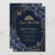 Save The Date Quinceanera Navy Blue Gold Floral Butterfly
