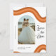 Surprenez vos futurs invités avec ces élégantes cartes Save the Date, avec arc-en-ciel en terre cuite, photo en arc, script rétro et texte personnalisé de votre choix. Ajoutez facilement vos propres détails en cliquant sur l'option "personnaliser".