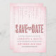 Cette charmante carte de faire-part "save the date" conçue par The Spotted Olive™ présente un joli fond rose pâle avec une image de pierres précieuses scintillantes et les mots "Save The Date" composés de manière élégante et remplis d'une image de paillettes roses. NOTE IMPORTANTE : CE DESIGN NE COMPREND QU'UNE IMAGE IMPRIMÉE DE PAILLETTES ; IL N'Y A AUCUNE PAILLETTE PHYSIQUE UTILISÉE OU INCLUSE ; IL N'Y A AUCUN EMBELLISSEMENT. IL S'AGIT D'UNE INVITATION IMPRIMÉE PLATE. Copyright 2013 à ce jour | The Spotted Olive™ | Tous droits réservés