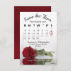 Ces magnifiques cartes Save the Date comportent une magnifique photo d'une rose rouge à longue tige réfléchissant dans l'eau avec des vagues et des ondulations. La carte comprend un calendrier avec votre date de mariage encerclée dans un coeur rouge. Beau design romantique.