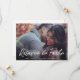Photo moderne enregistrer la carte de date en espagnol avec votre image horizontale fond saigné avec une superposition de texte. Les mots, "reserva la fecha" sont dans une police manuscrite en caractères blancs. L'arrière a tous les détails de votre mariage en noir sur un arrière - plan blanc. Un design simple mais élégant qui fait de votre photo la principale caractéristique.