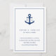 Espagnol nautique enregistrer les dates avec une ancre bleu marine avec votre monogramme de chaque côté à l'intérieur d'une frontière, sur un arrière - plan blanc. L'arrière est assortie d'une teinte bleu marine. Ce design simple est parfait pour un mariage à la plage en été.