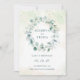 Elégante carte Espagnol Save The Date avec "Reserva La Fecha" à l'intérieur d'une couronne composée de feuilles d'eucalyptus et de verdure avec une pointe de bleu. Voici vos détails mariages en vert foncé sur un lave pastel aquarelle avec des taches de parties scintillant faux or. L'arrière est assortie d'une teinte de bleu doux et vert. Ce design simple et rustique est idéal pour un mariage à thème botanique en été.