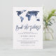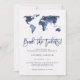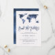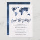 Ce mariage chic et moderne, à l'exception de la carte date, dispose d'un papier aquarelle blanc et d'un look arrière - plan avec une carte du monde couleur bleue tendance et une typographie assortie qui dit "réserver les billets!". Idéal pour toute personne ayant un mariage de destination où les invités devront faire des arrangements de voyage à l'avance.