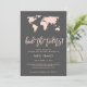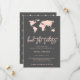 Ce mariage chic et moderne, à l'exception de la carte date, présente un arrière - plan gris fumé avec une carte du monde couleur rose vif et une typographie assortie qui dit "réserver les billets !". Idéal pour toute personne ayant un mariage de destination où les invités devront faire des arrangements de voyage à l'avance.